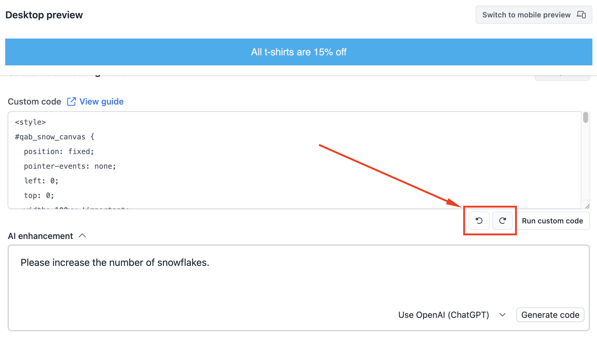 You can now also generate code using AI to create custom effects or styles without needing coding knowledge. This tool can help you generate new or modify the existing custom code.